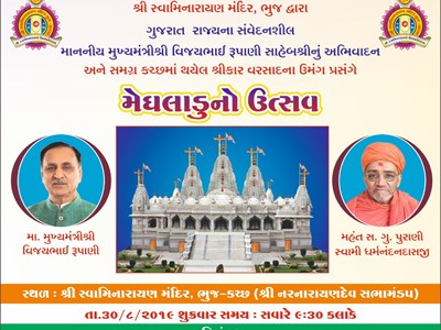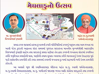 A special welcoming of Mukhya Mantri Shree Vijaybhai Rupani will be held in recognition of his efforts and support during the tough drought period Kutch has faced recently. It is also an opportunity to celebrate the rain that has finally showered across Kutch.