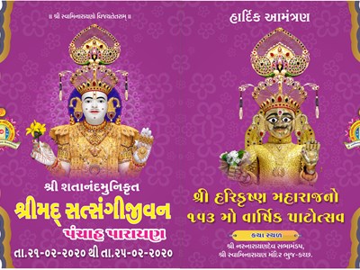 Shreemad Satsang Jivan will be recited to celebrate the 153rd Patotsav of Shree Harikrushna Maharaj. The five day event will include Rajupchar and Maha Abhishek along with various other celebrations.