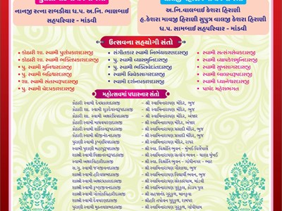 A five day parayan will be held during the auspicious time of Tulsi Vivaah whereby Shrimad Bhagwat and Vrutti Vivaah will be recited by learned saints from Bhuj Temple.
