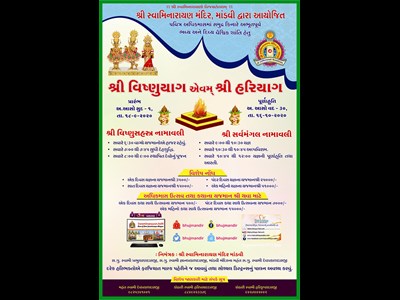 On the auspicious month of Adhik Maas Shree Swaminarayan Temple Mandvi will be holding a Shree Vishnu Yaag and Shree Hari Yaag everyday in the mornings from 18th September 2020 to 16th October 2020. Please see poster for more details. This event will be streamed live online.