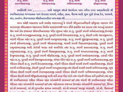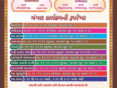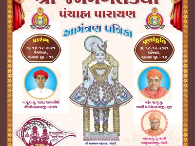 Shree Swaminarayan Mandir Mandvi has organised a recital of Shreemad Bhagwat Katha from 3rd January 2022 to 9th January 2022.