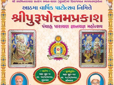 Mumbai Satsang Bhuvan - Thane will be celebrating their 8th Patotsav with the recital of Purushottam Prakash composed by Nishkulanand Swami in which he reveals the greatness of Maharaj. This event will be broadcasted live.
