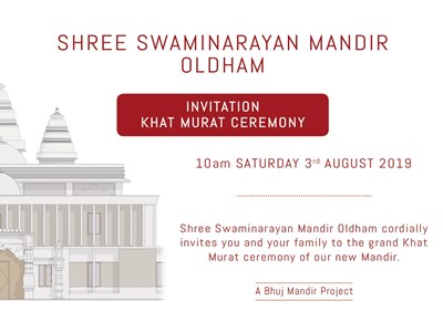 Shree Swaminarayan Mandir Oldham will be celebrating their 42nd Patotsav from Monday 29th July 2019 to Sunday 4th August 2019. Abhishek will be performed on Friday 2nd August 2019 followed by Ankoot Darshan. During this event, Khat Murat will be held on Saturday 3rd August 2019 at the New Mandir site on Copsterhill Road and will be graced by Bhuj Mandir Mahant Swami along with over 25 santos.
