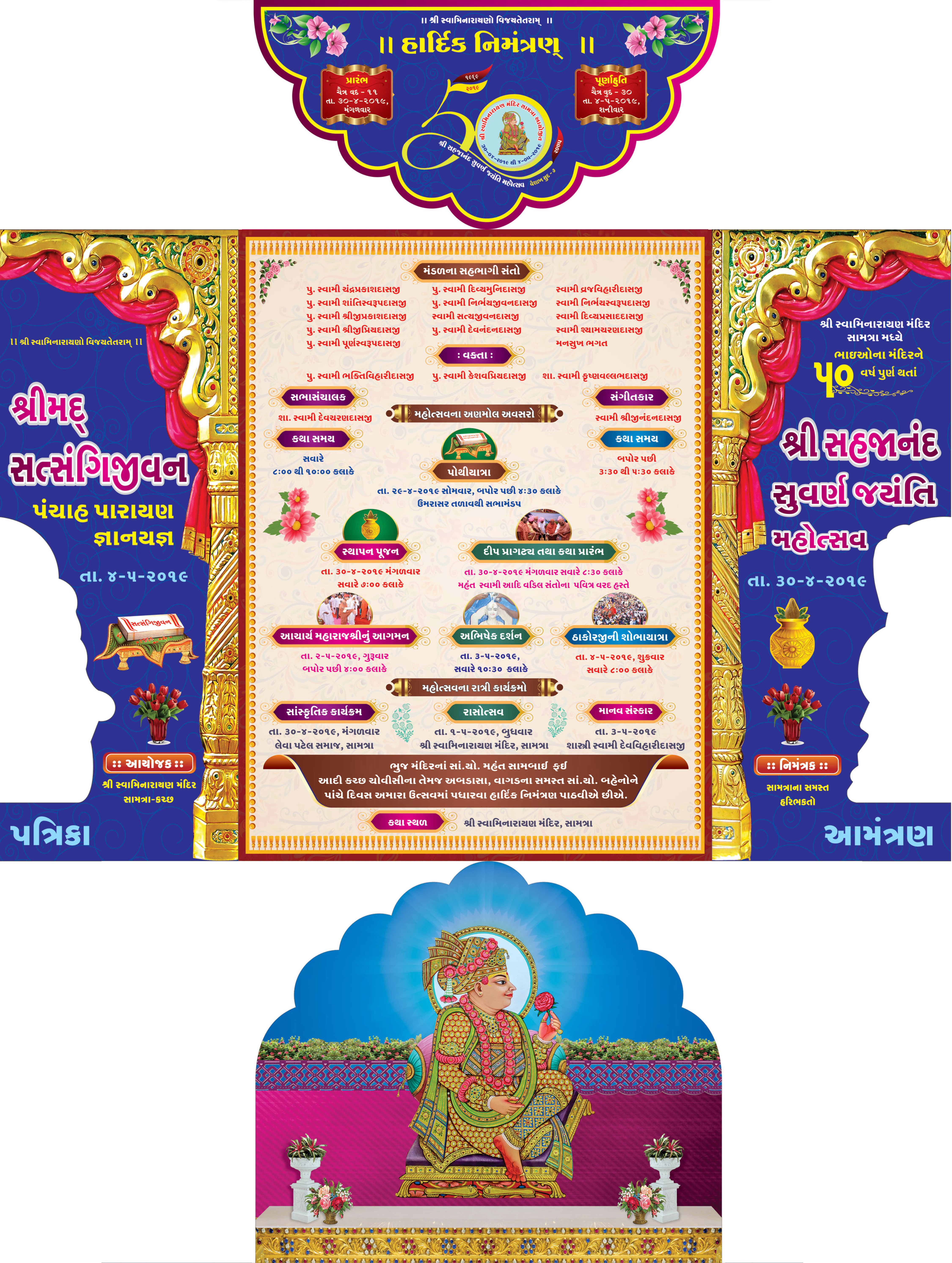 Samatra Gents Temple will celebrate 50 years anniversary this year in grand manor. Shreemad Satsangi Jeevan will be recited by learned saints from Bhuj Mandir.