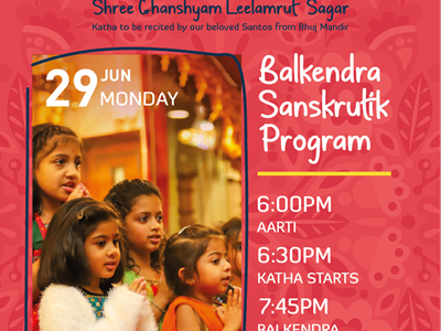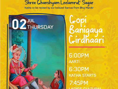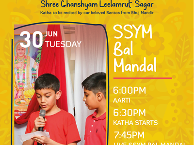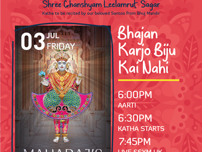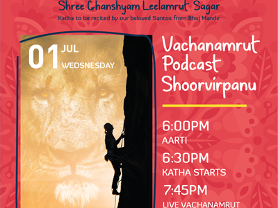 Join us every evening from Sunday 28th June 2020 to Sunday 5th July 2020 for an insightful delve into the amazing Ghanshyam Leelamrut Sagar recital by our Santos from Bhuj. There will be cultural events, performances, quizzes, dramas, discussions, dance, music, singing and a lot more for you to enjoy!